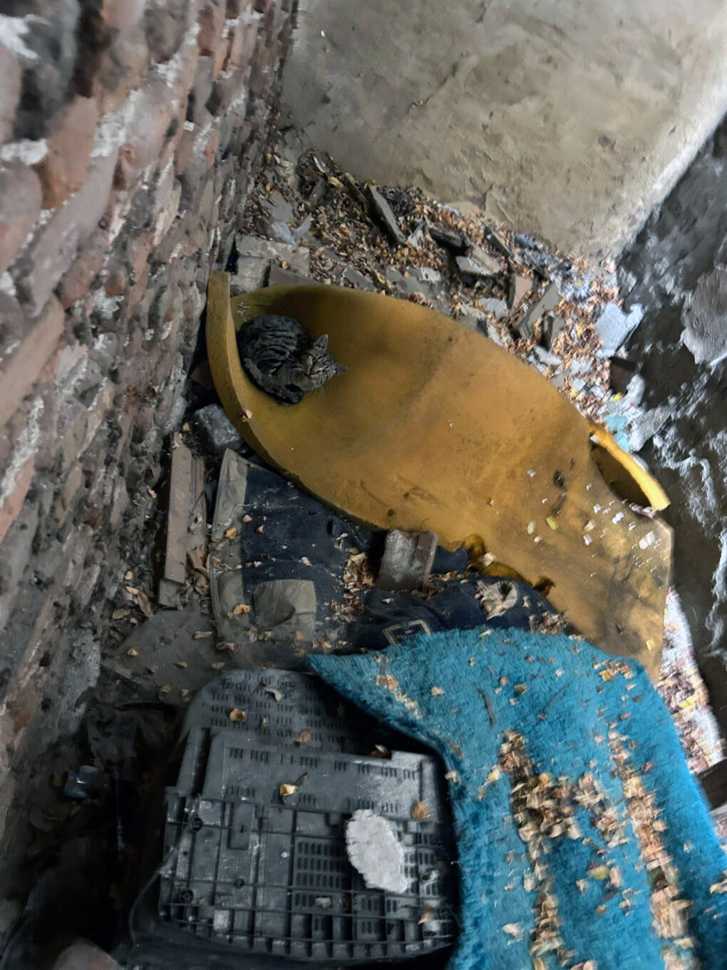 The man kept an eye on him, and after a while he noticed that Smurf was just lying there, limp, unable to move and crying. Worried, he decided to break in, approached the exhausted cat, and Smurf allowed himself to be picked up.